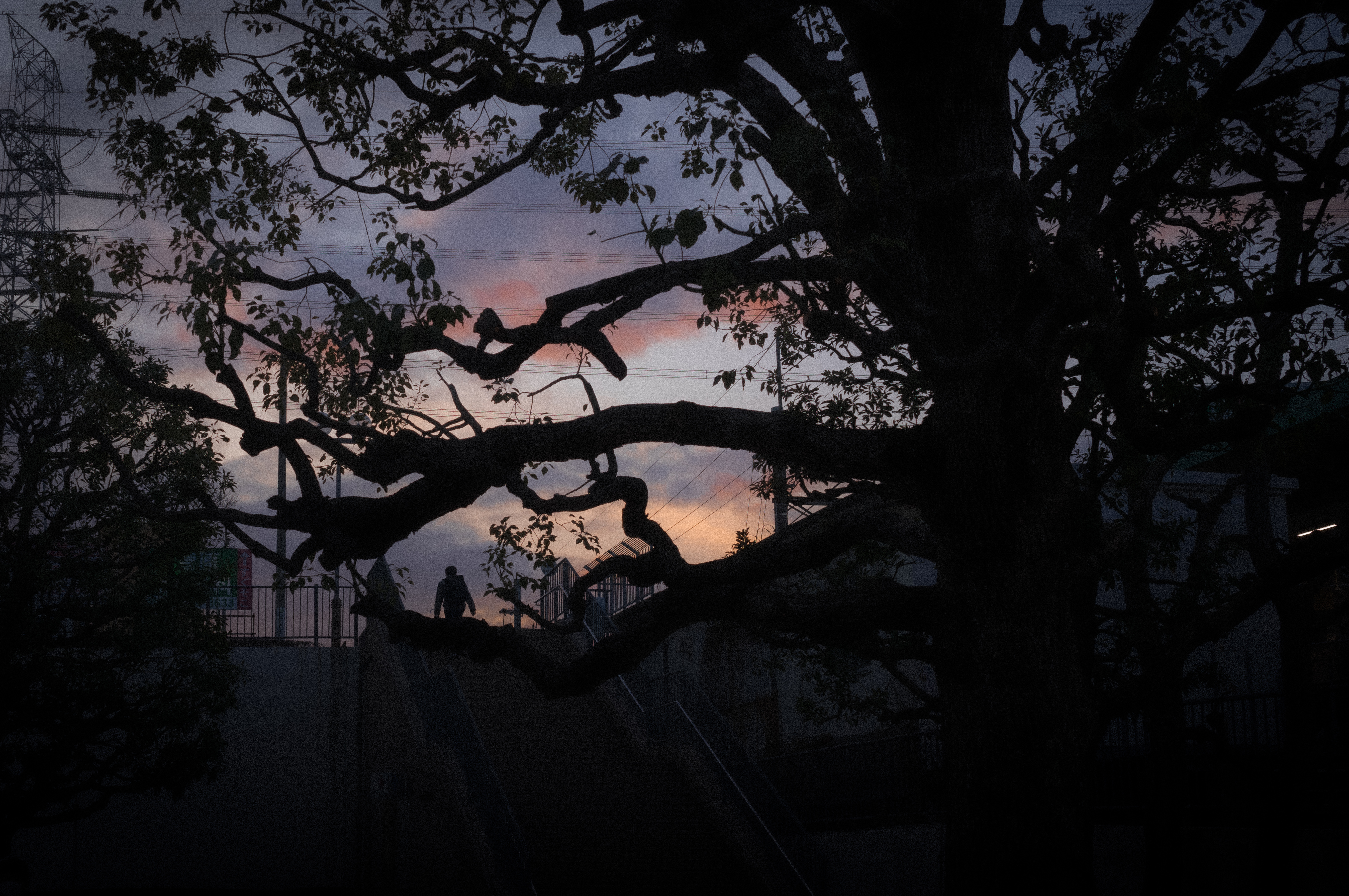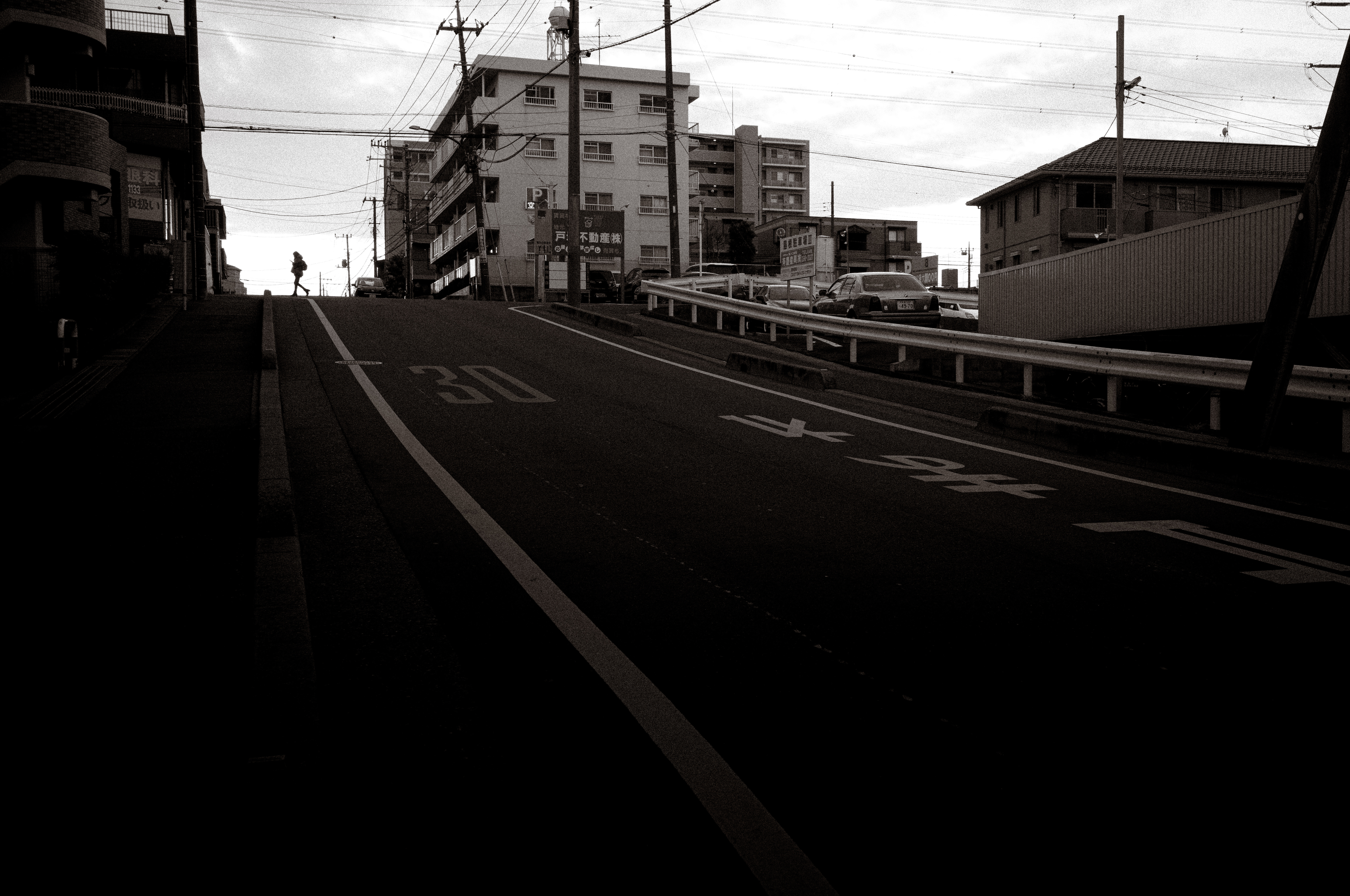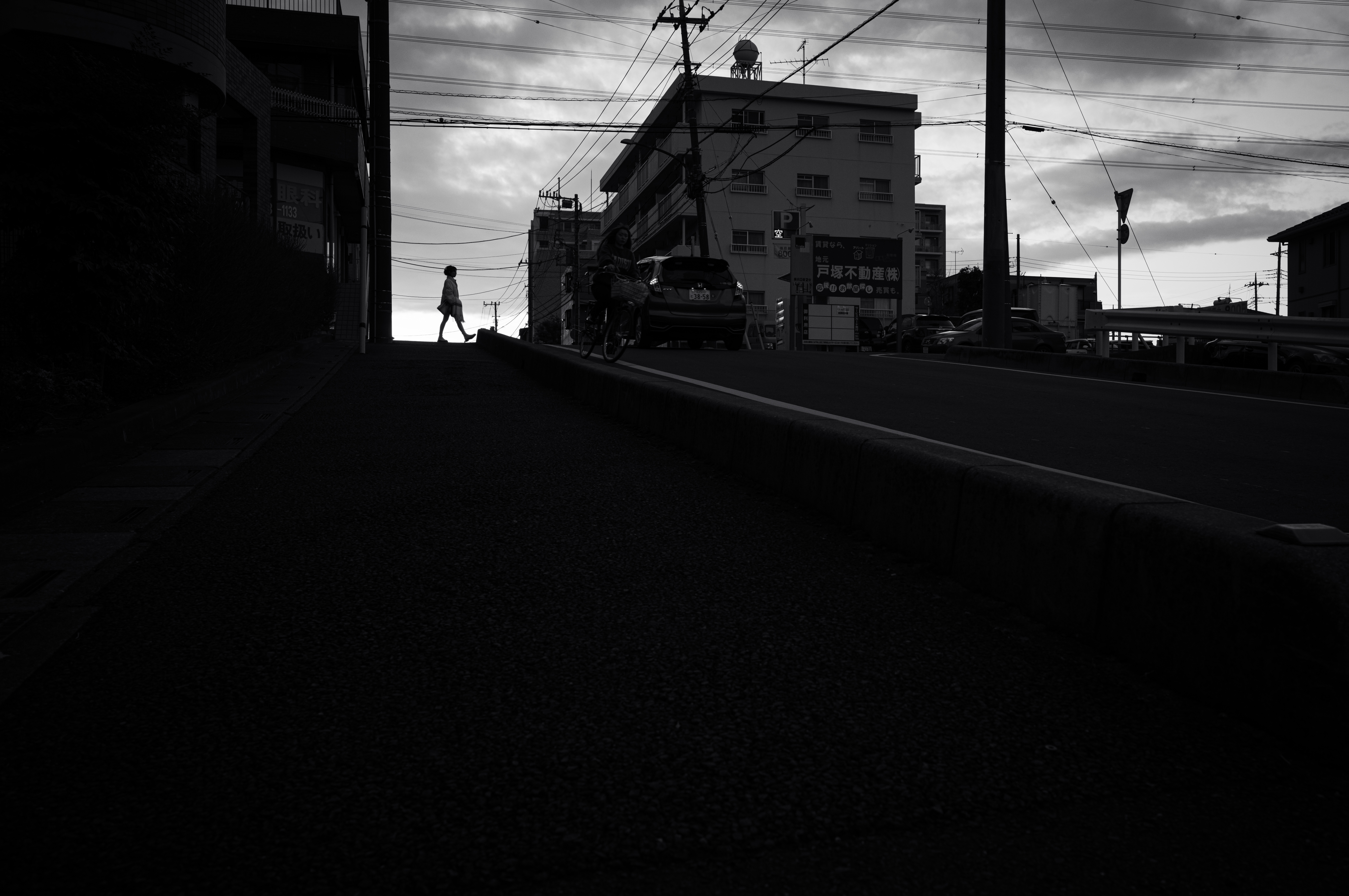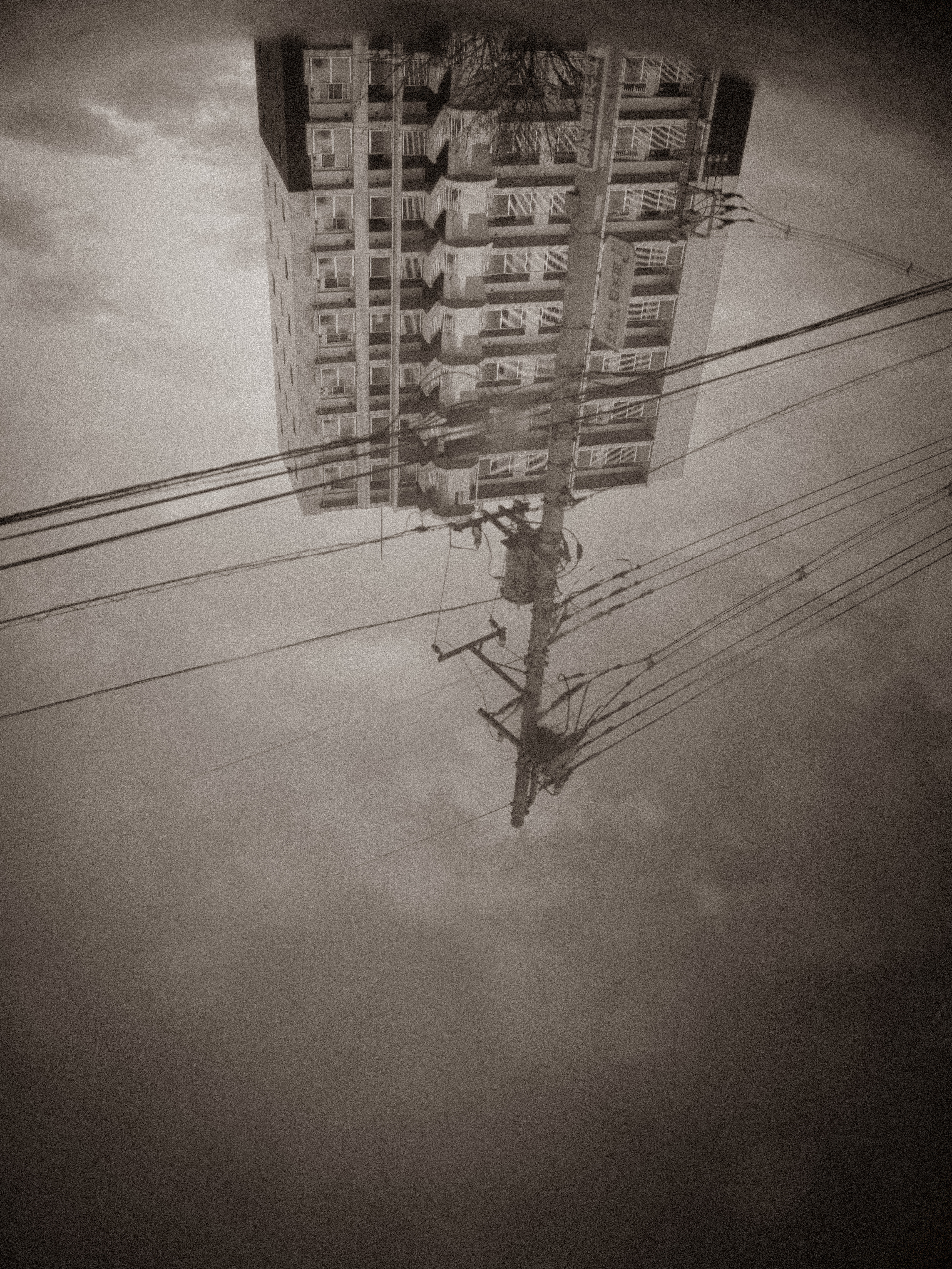 雨上がりの水溜りを覗けば、人工物も優しく淡く映る世界が広がるんだと、モノクロでも少しセピアに寄せて現像しました。現在【人工的な建物】から昔【懐かしい淡い風景画】に戻れたらいいなという想いを感じた瞬間でした。