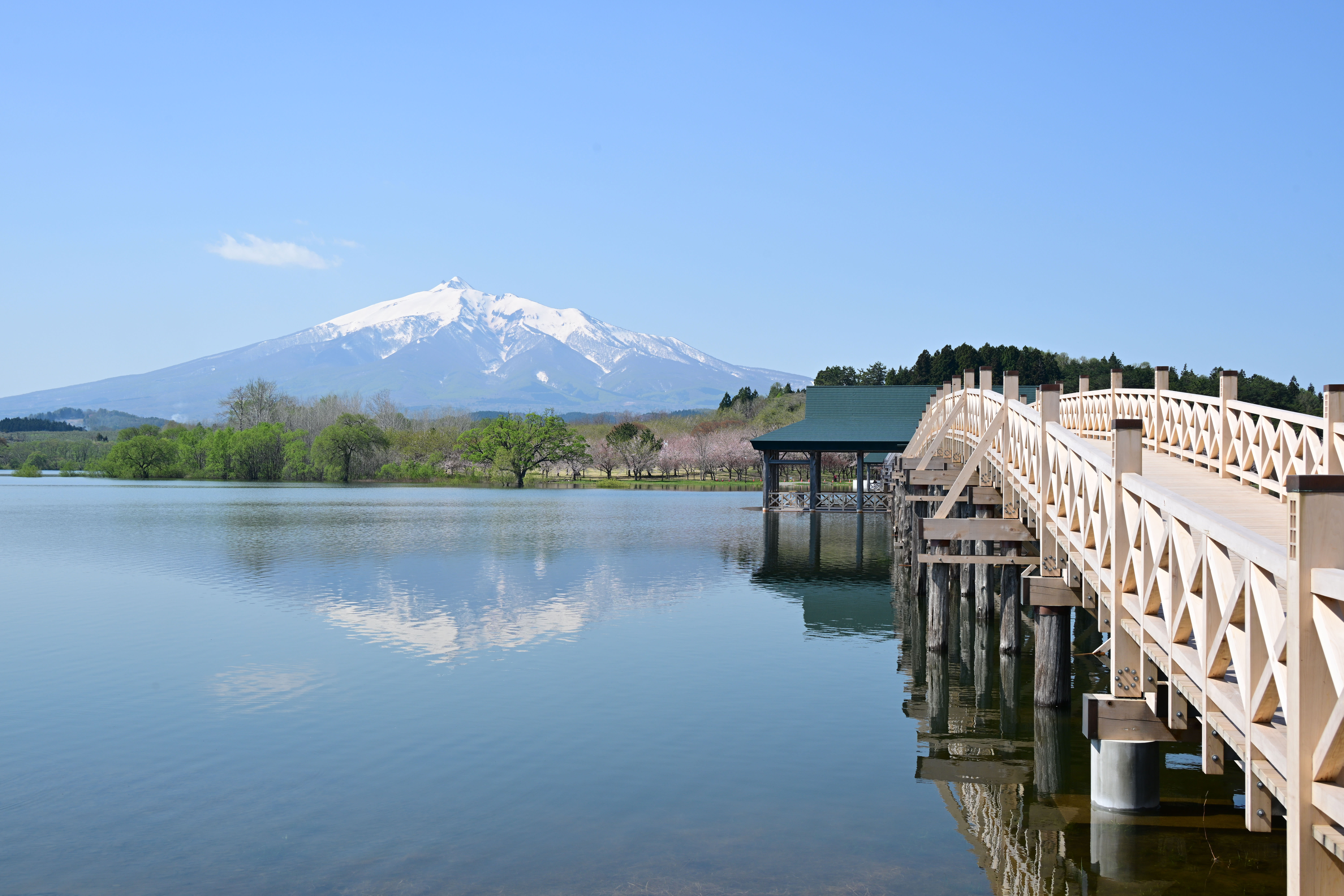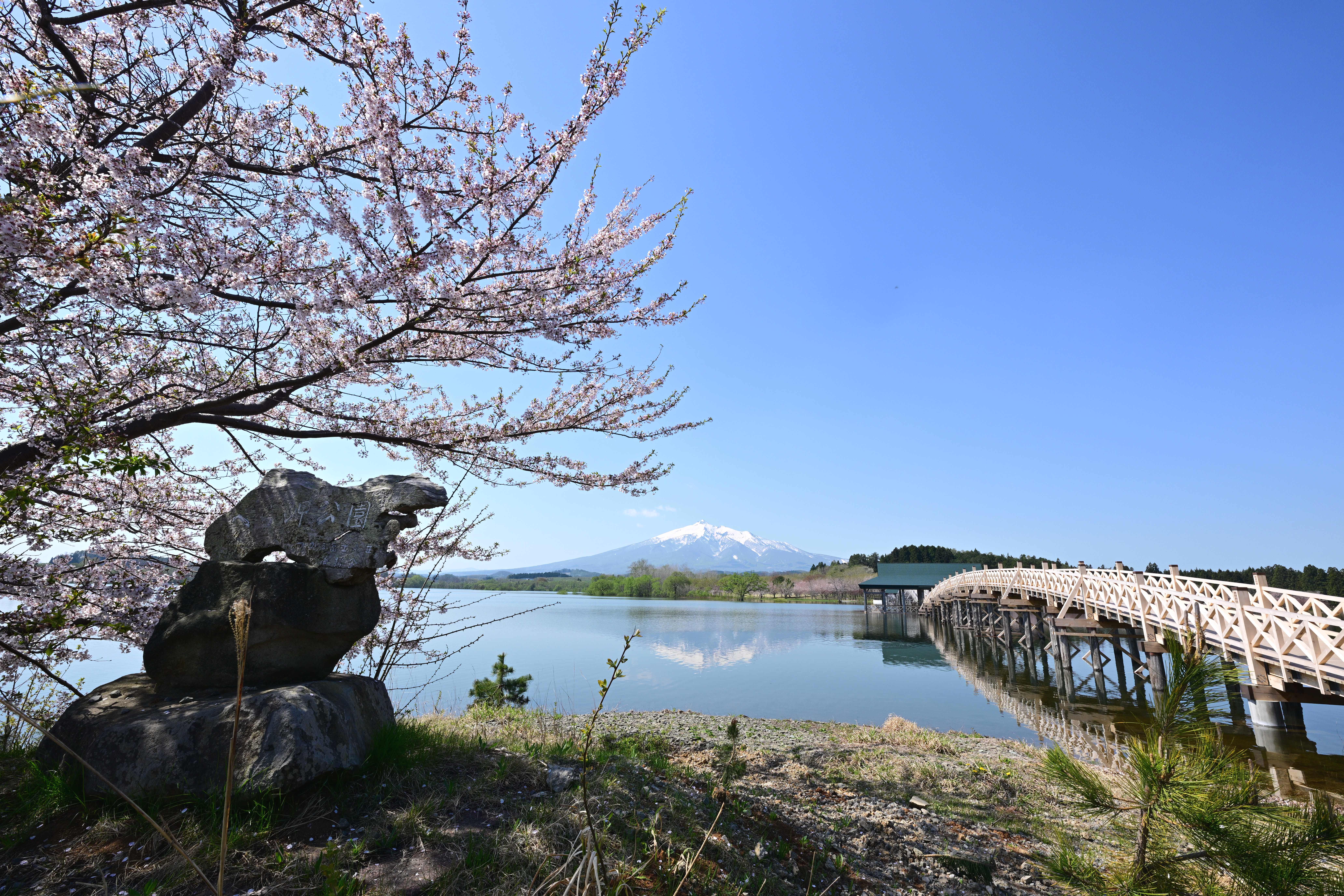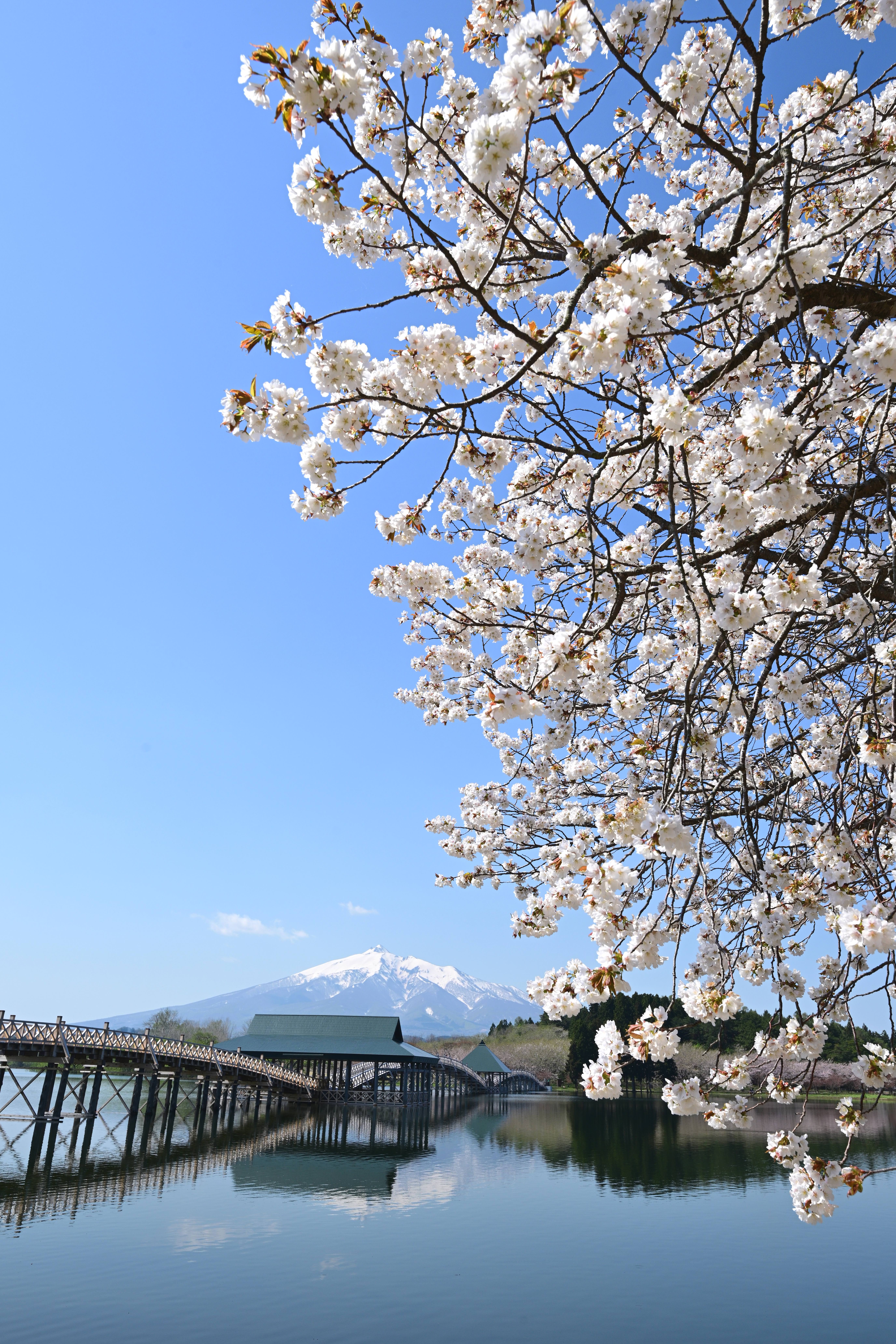 新しく建て替えられた鶴の舞橋、春の東北の風景