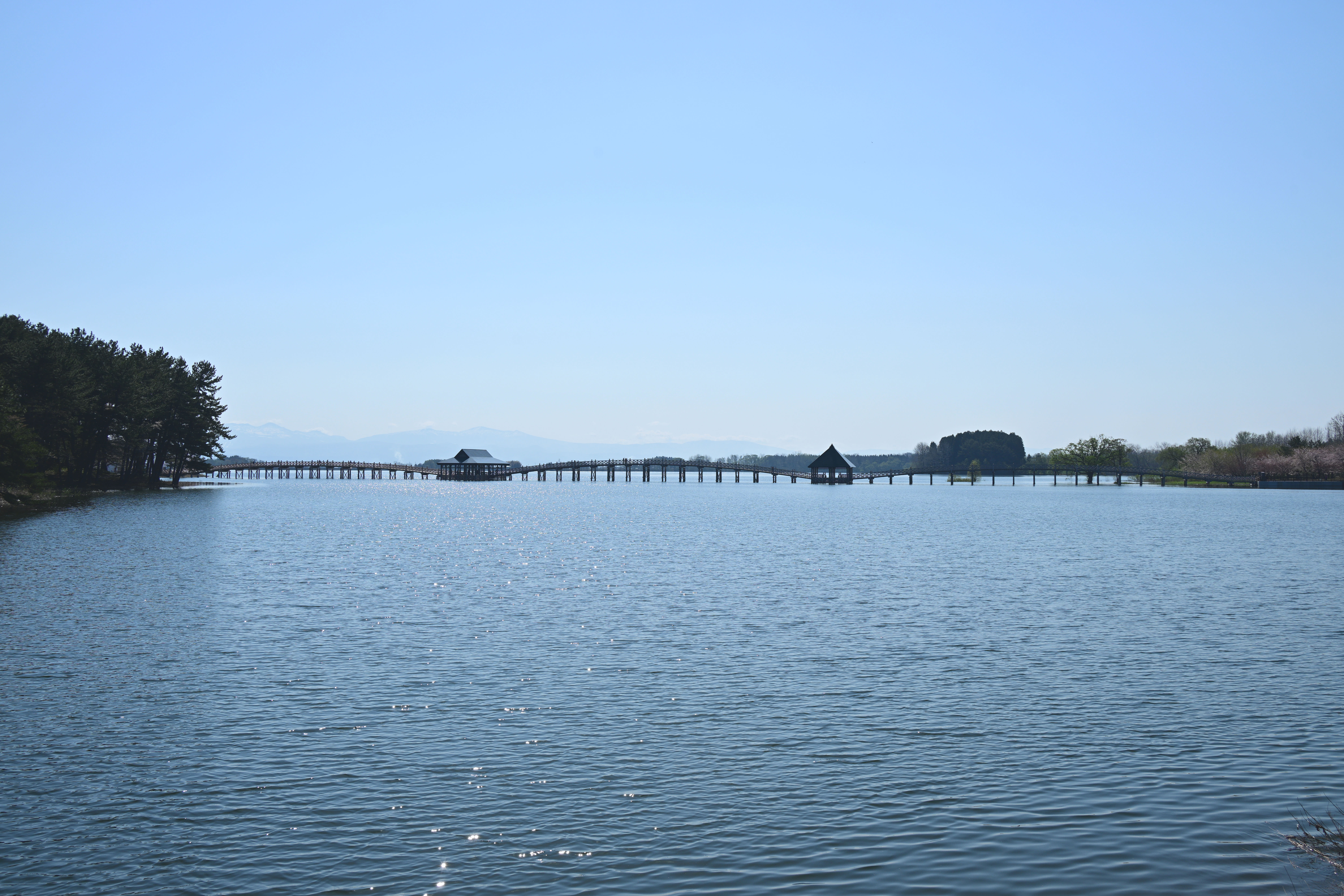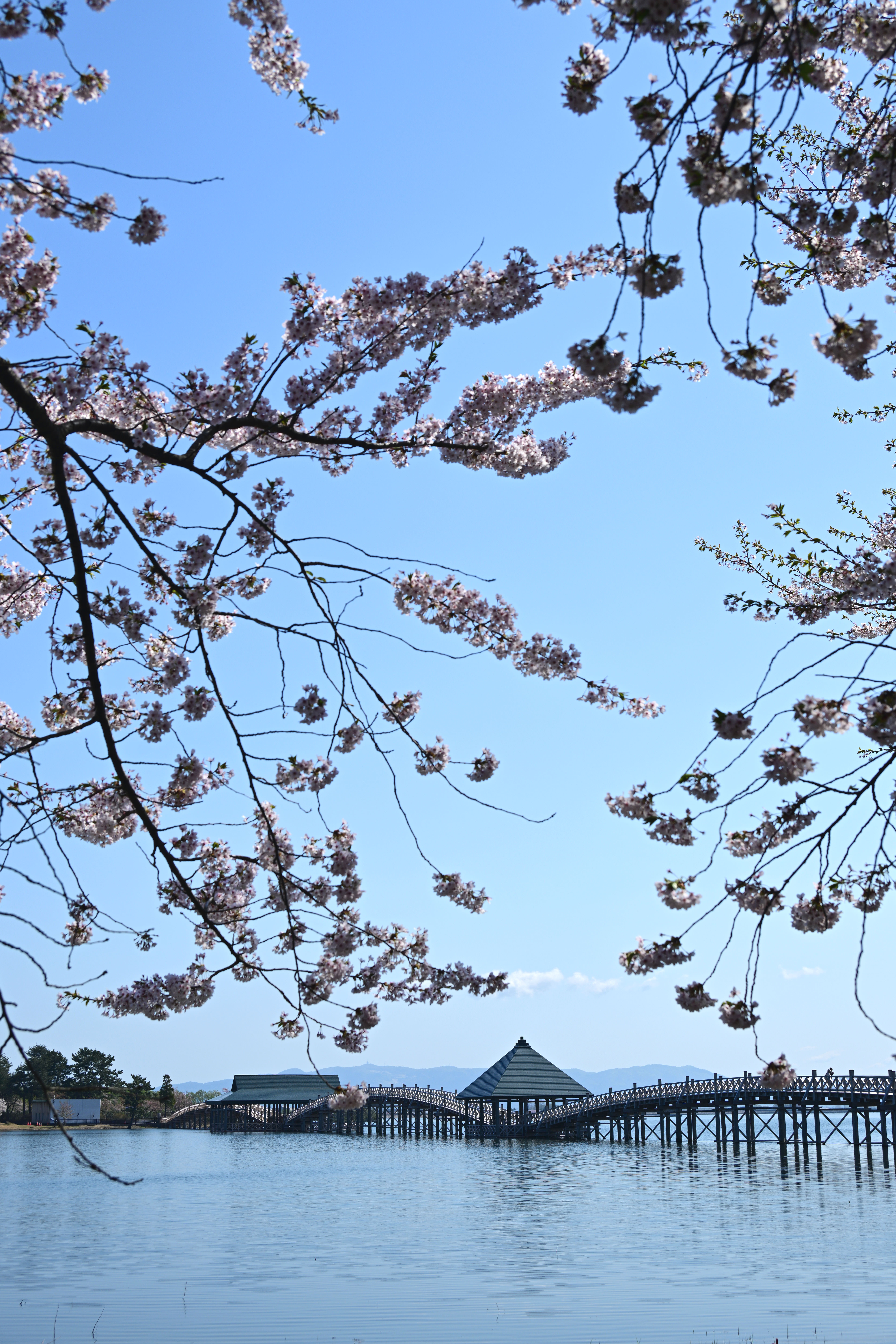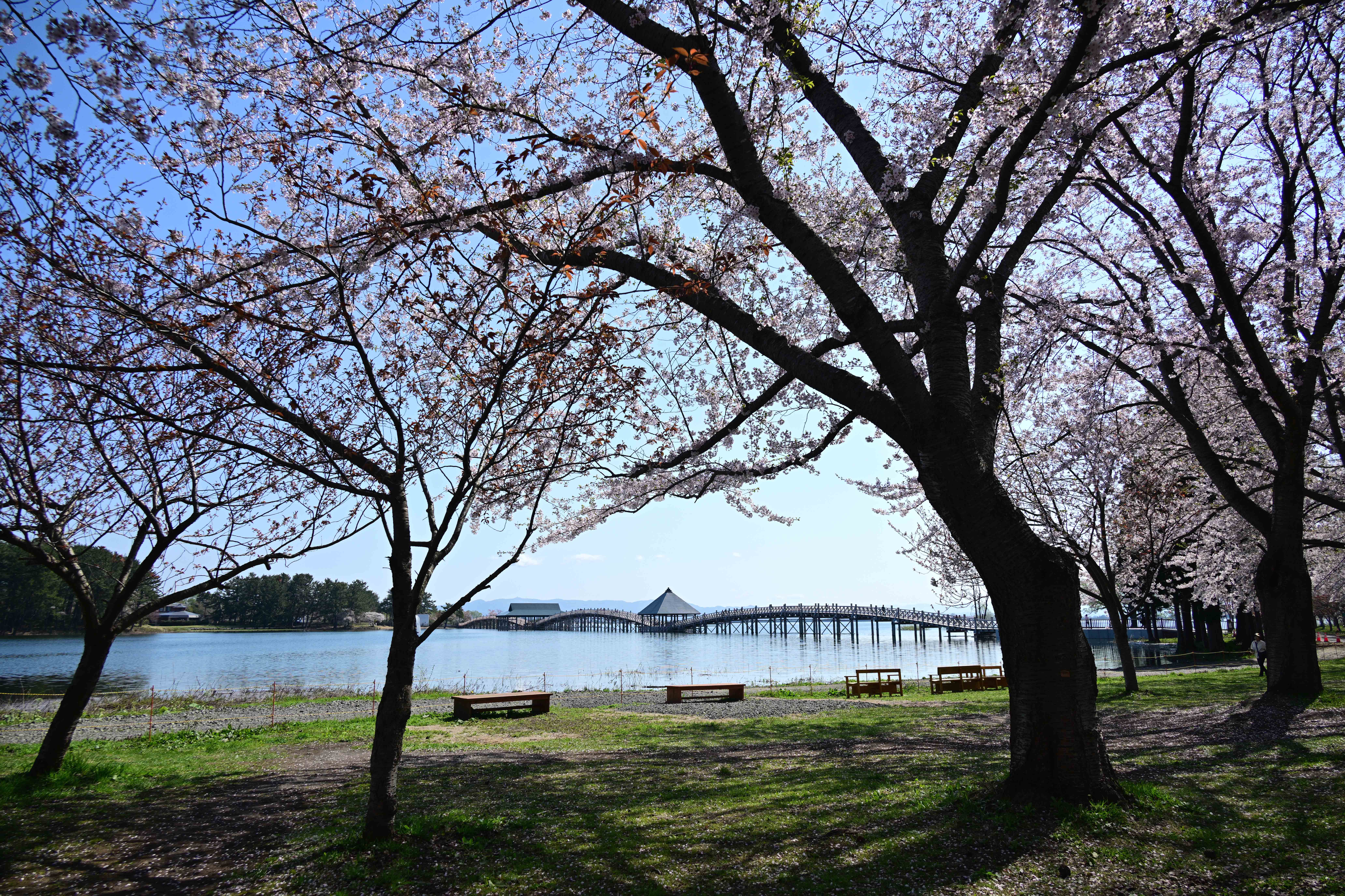 新しく建て替えられた鶴の舞橋、春の東北の風景