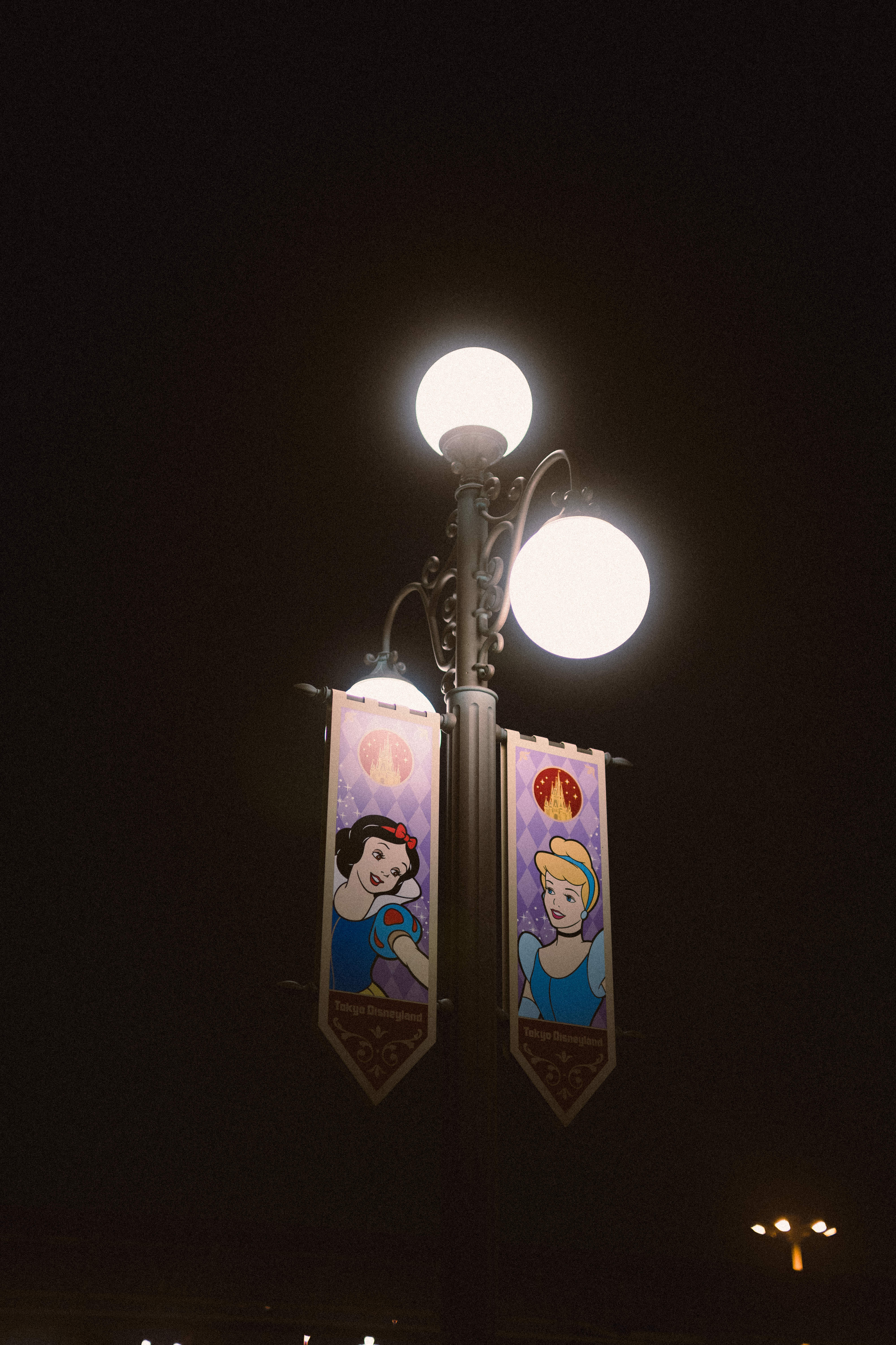 某テーマパークで夜間スナップをした時の一枚です。緩やかなスロープとその先にある街灯で照らされる湾内。贅沢な時間でした。