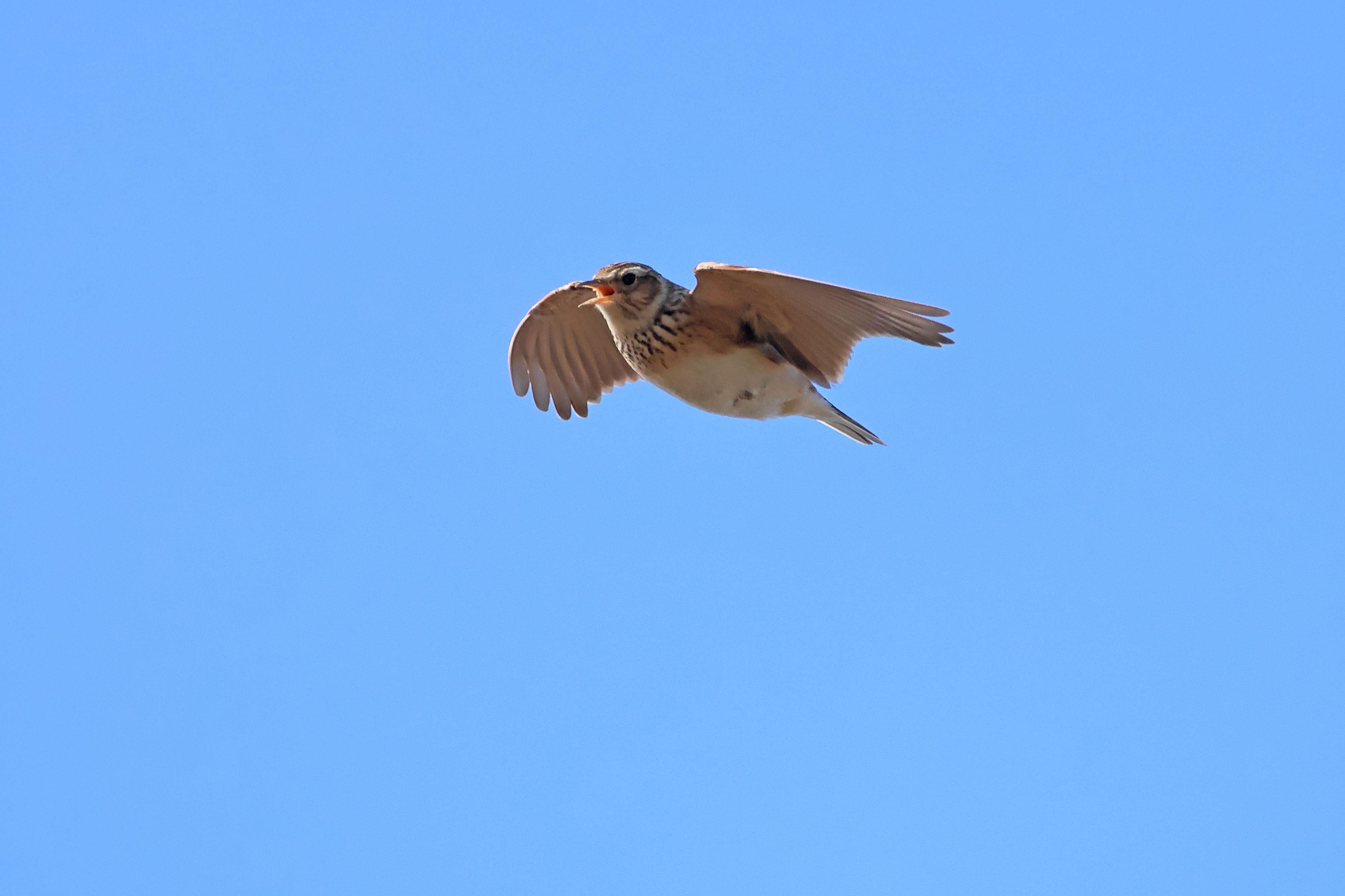 春先のこの時期に干拓地の畑の農道を歩くと、あちこちからヒバリが飛び出し、上空で囀ります。