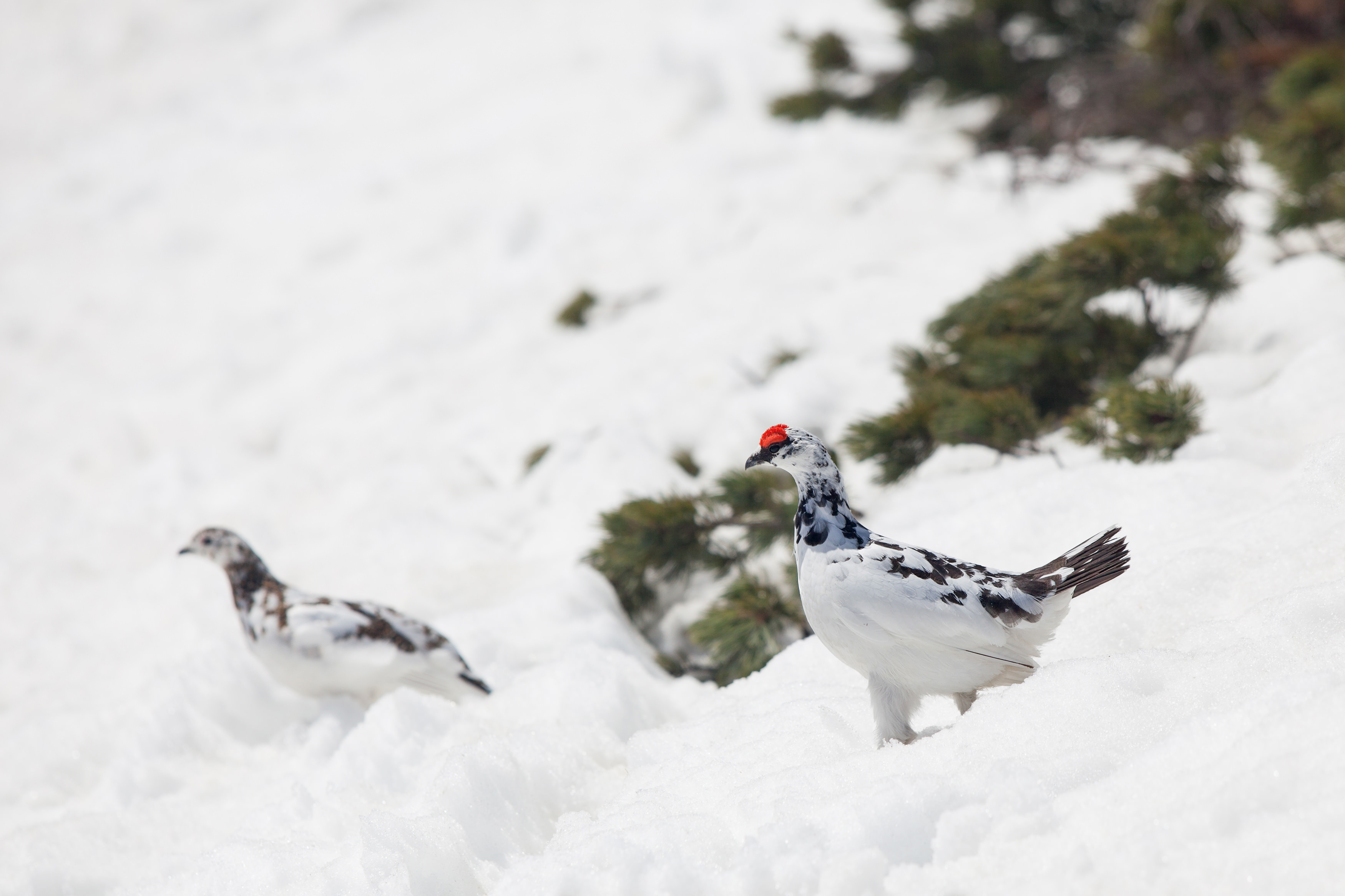唐松岳へ向かう途中、運良くライチョウの番に会えました。