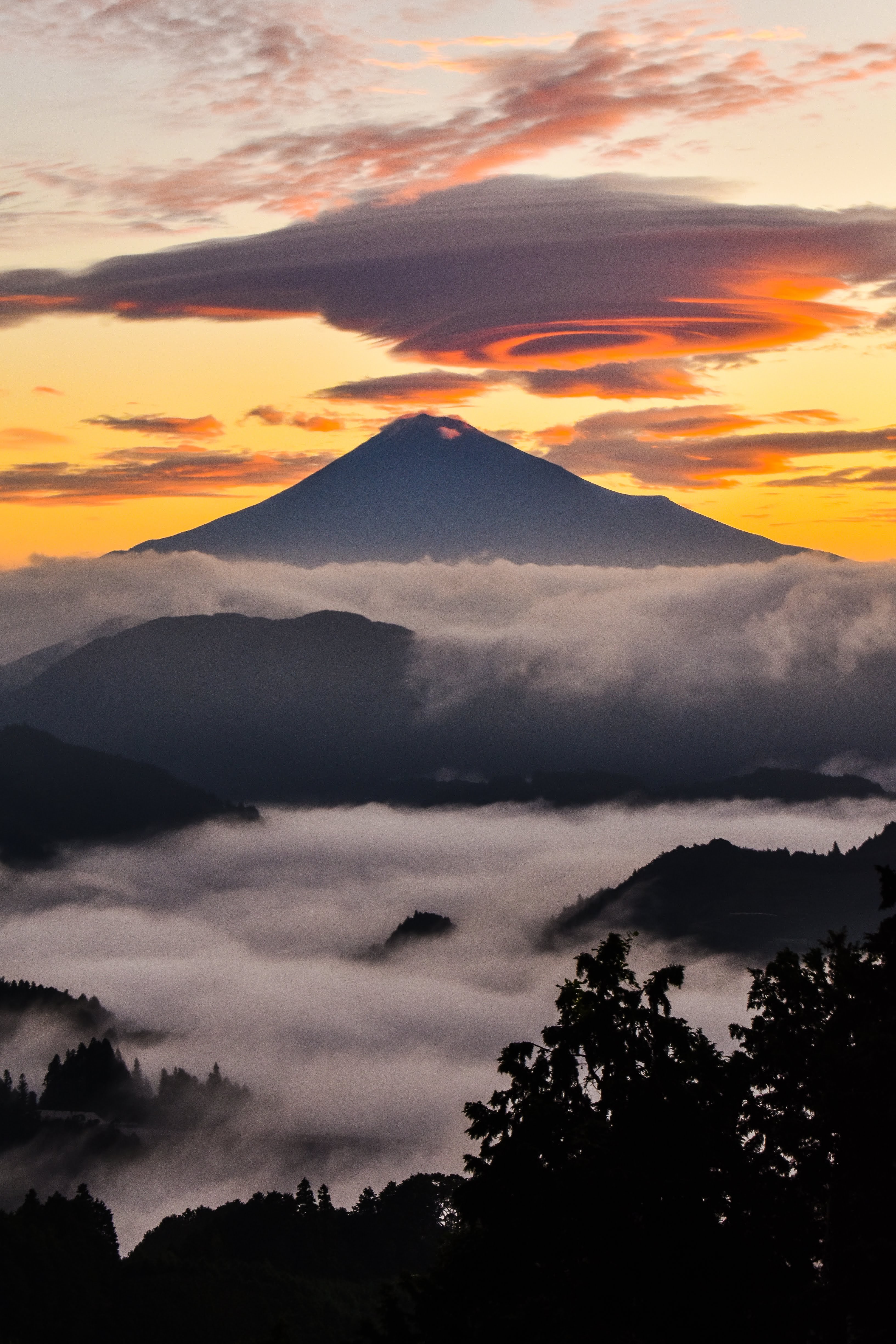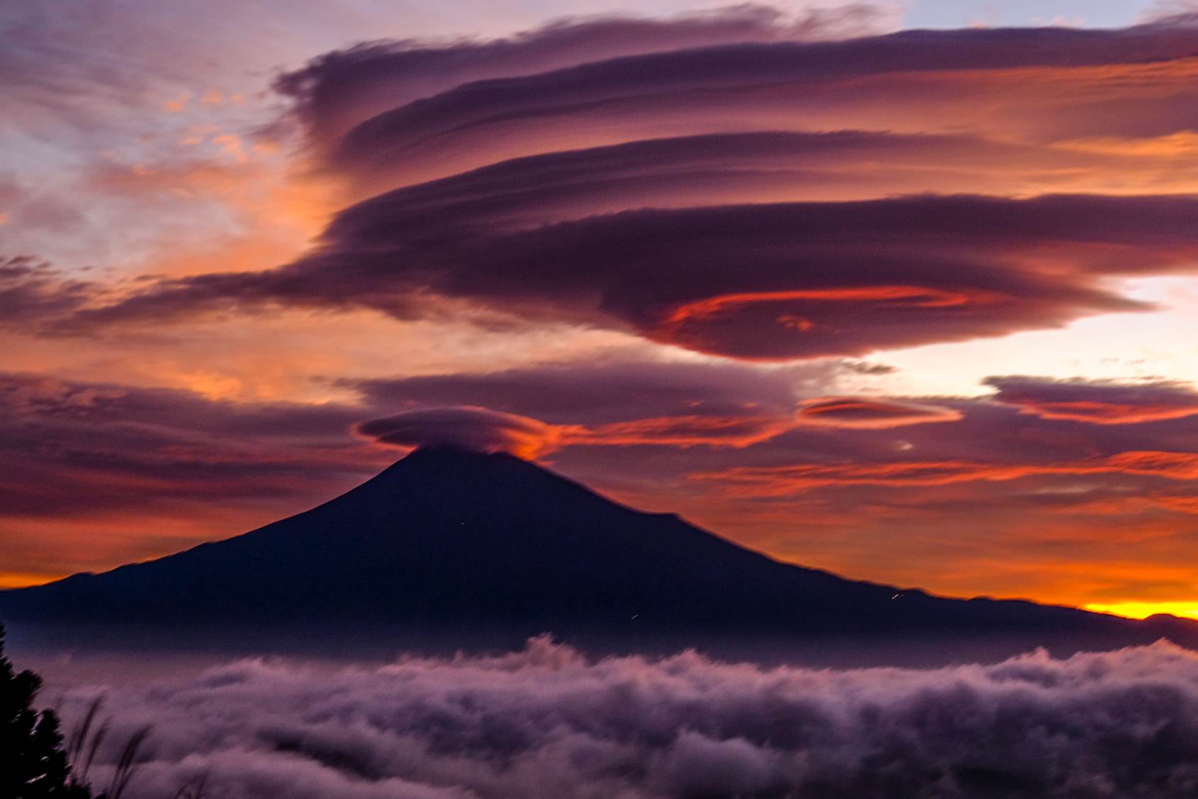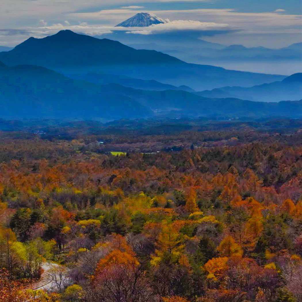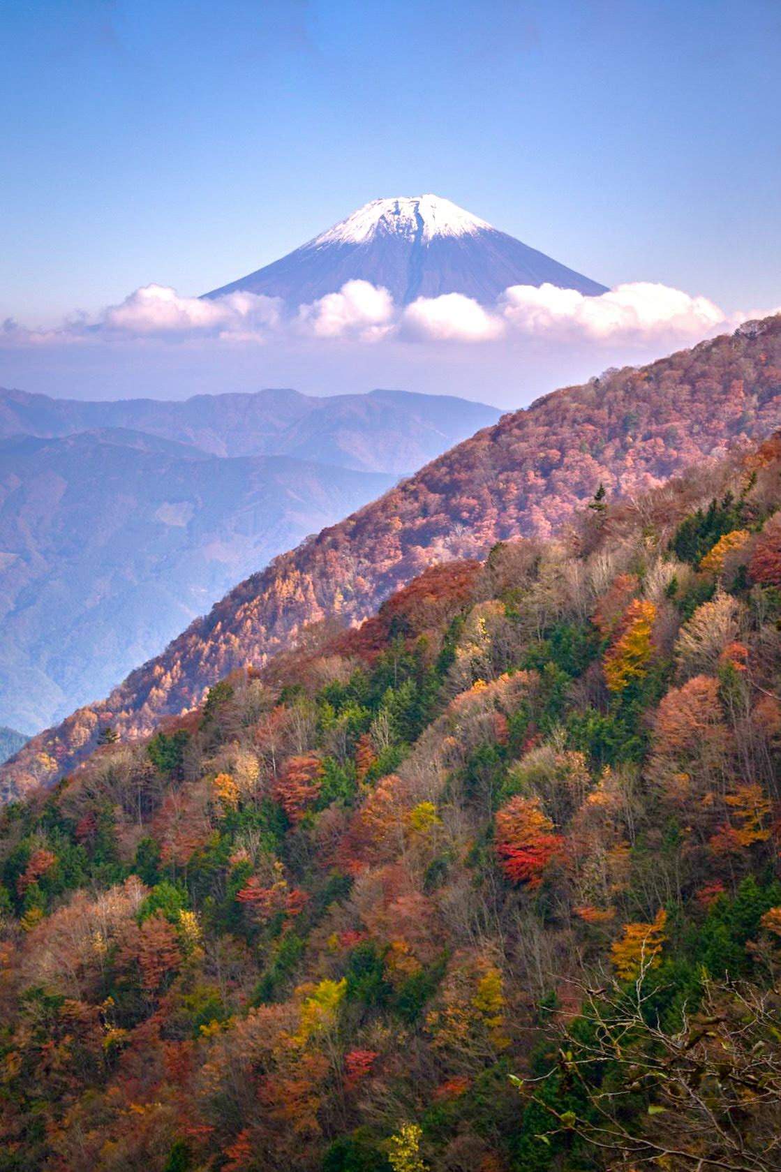 見渡す限りの紅葉と富士山です